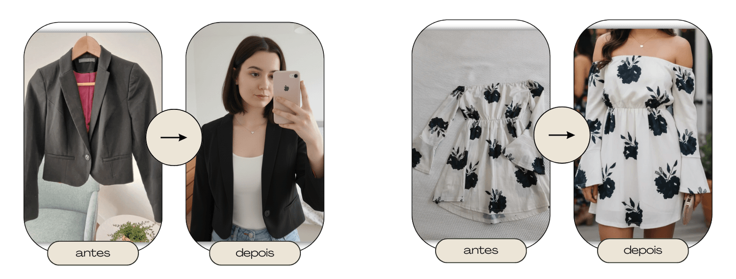 Dados mostram que anúncios de roupa com modelos vendem 2x mais rápido do que fotos simples em cabides.
